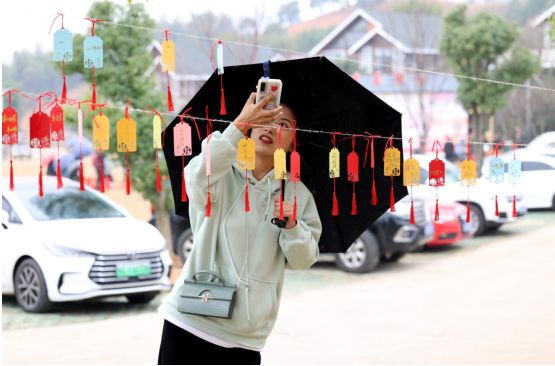 活动分为赏茶、采茶、手工体验和互动游戏四个环节。上午十点,20余名女职工代表卸下繁重的工作,走进依山傍水的茶园。虽然天空下起了朦朦细雨,但大家的热情却丝毫未减,一路欢声笑语,一片其乐融融。大家纷纷拿上祈福卡,写下美好的心愿,并亲手悬挂在树旁。