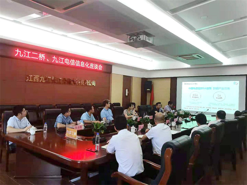 7月6日,公司与九江电信开展信息化建设座谈会,就5G+智慧应用创新、应用实践和应用推广开展深入交流。九江二桥班子成员、相关部门负责人,九江电信相关负责人、业务技术人员参加座谈。