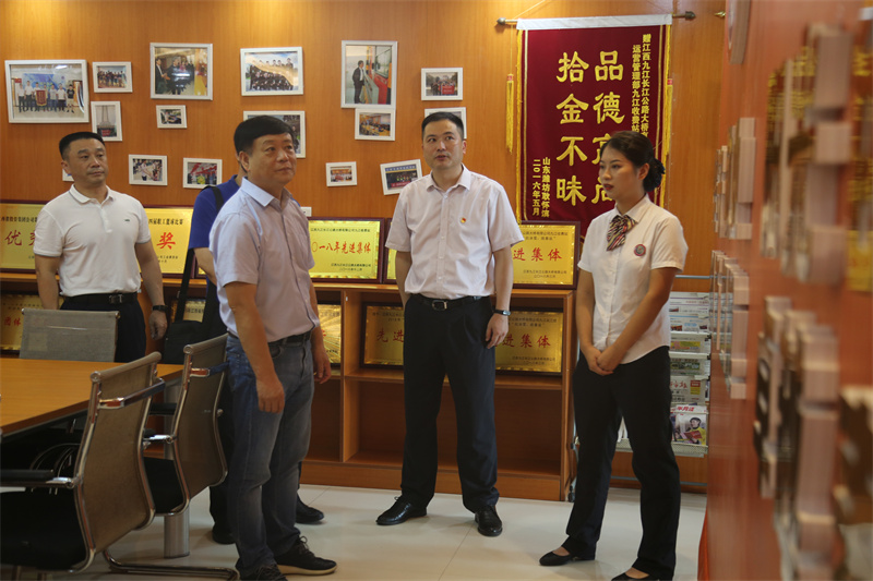 8月24日,省国资委党委委员、副主任卢正大一行来到九江二桥考察调研,面对面与企业负责人交流,深入了解企业党建、安全及生产经营情况。集团董事、财务总监李松,集团综合部相关人员一起参加调研。