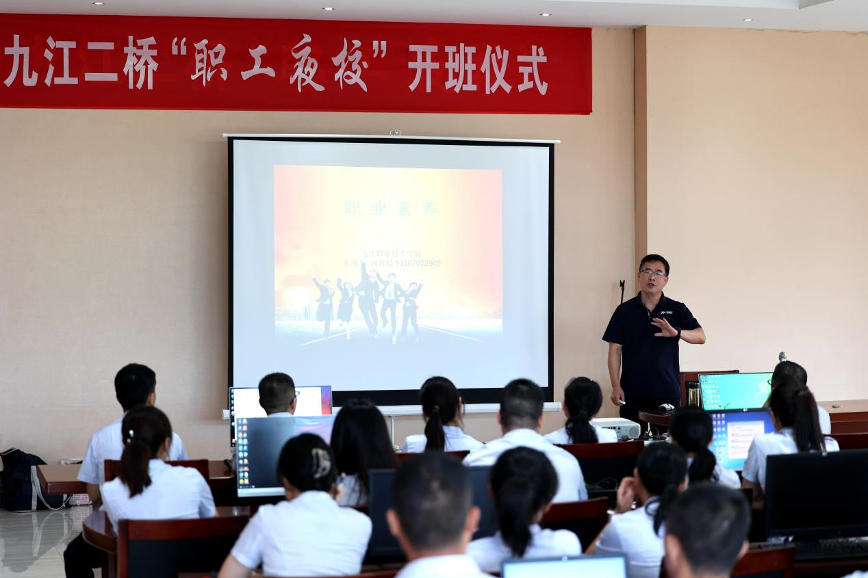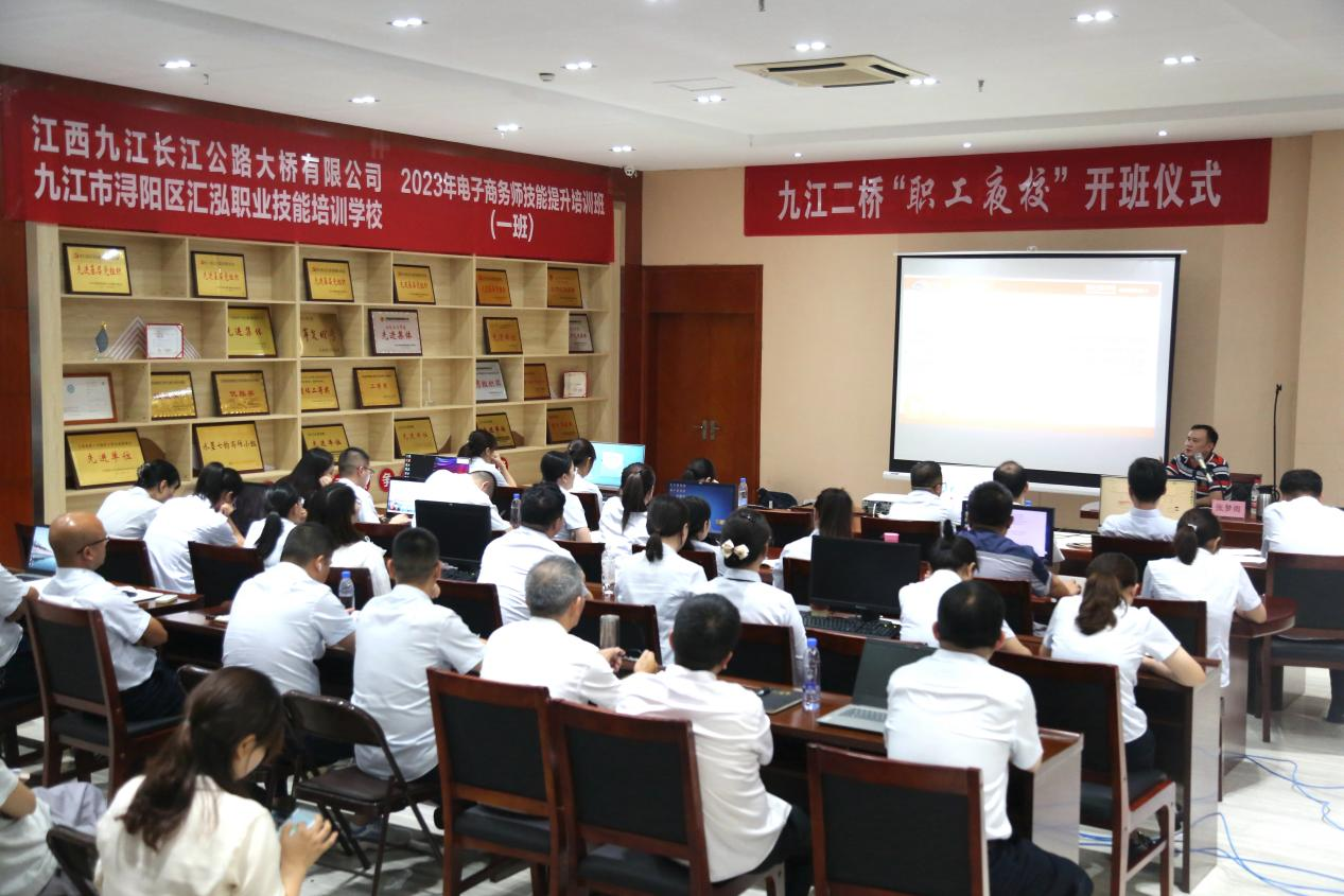 7月13日,九江二桥与汇泓职业技能培训学校、九江经开区锐天职业技能培训学校等多家培训机构开展校企合作,挂牌成立了“职工夜校”。