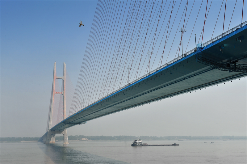 由赣江新区控股的九江长江二桥,全长25.145公里,采用双塔混合梁斜拉桥,主跨818米,是江西省筹资建设的第一座具有世界领先水平的跨长江高速公路桥梁,工程建设期间先后荣获了“鲁班奖”“詹天佑奖”“优质工程奖”。十年间,大桥的工程质量、安全运营经受住了考验,1亿辆车次从容过往,不仅为长江两岸地区经济社会发展注入了强劲动力,更彰显了中国桥梁工程建设和管养的非凡实力。