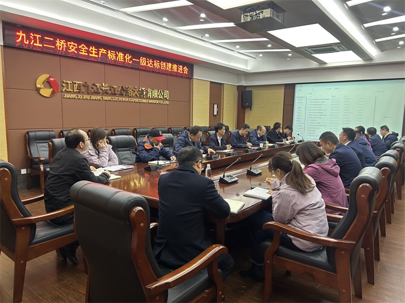 11月16日下午,九江二桥召开安全生产标准化一级达标创建推进会,公司分管安环副总经理主持会议,技术服务机构专家老师、各部门负责人,安全生产标准化专班成员共19人参加会议。
