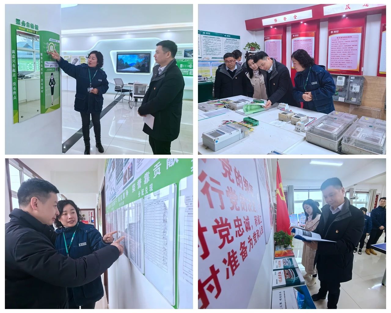 共建活动中,刘强一行实地参观了国网九江供电公司企业文化展厅、创新工作室,详细了解“旗帜领航”党建工程的创建背景、实施路径及考核评价。随后,在工作人员的引导下,刘强一行来到赛阳供电所,依次参观了服务大厅、训练基地、劳模工匠室、党员活动室等地,详细了解了供电所的安全生产、班组管理、运维抢修、供电服务等情况。双方就综合服务保障、考核评价体系建设、支部特色亮点工作等方面进行了深入交流探讨。