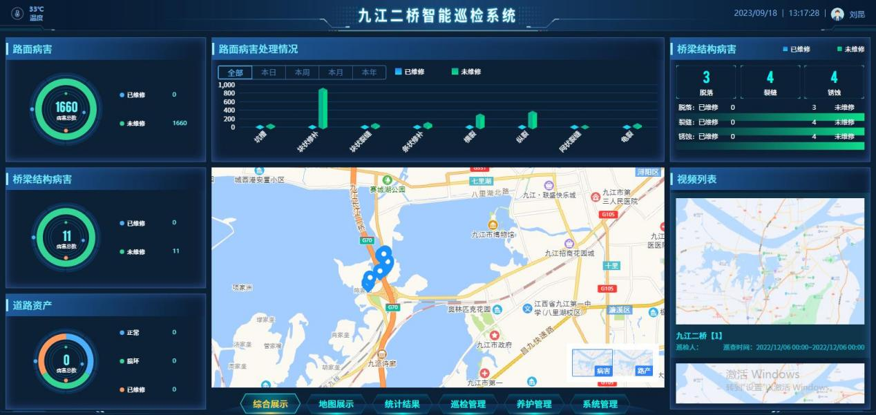 三是开发了智慧巡检系统,使得智慧巡检数据能够第一时间传输到系统平台,同时融入九江二桥桥梁养护管理系统,达到数据互通和共享的目的。
