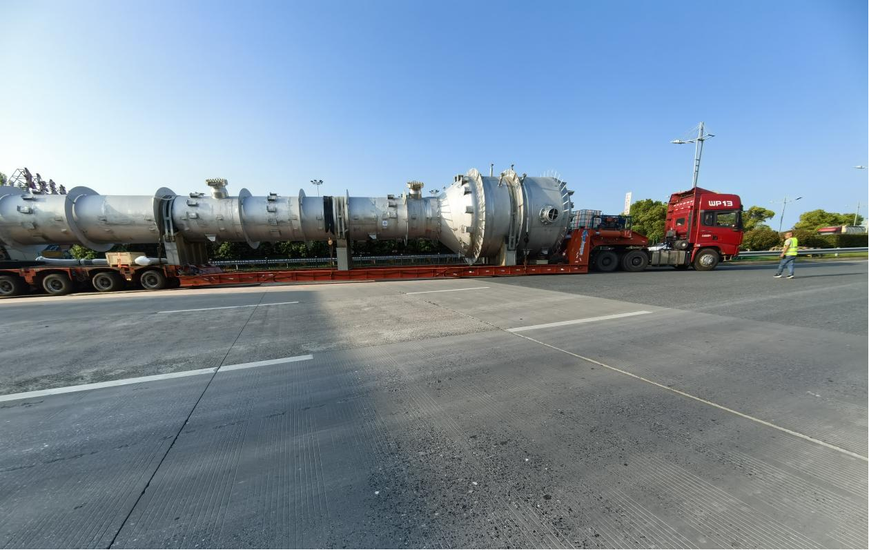 该站管理人员经情况核实,第一时间向公司报告,积极协调工程养护及安全环保部门,联合辖区交警路政及相关单位共同研究该车辆的通行方案。在确认该车辆持有《大件运输车辆通行公路桥梁结构检算报告》后,决定临时拆除收费站入口部分隔离墩、隔离栅片网、伏地护栏等防护设施,同时铺设钢板,为车辆安全通行提供保障。