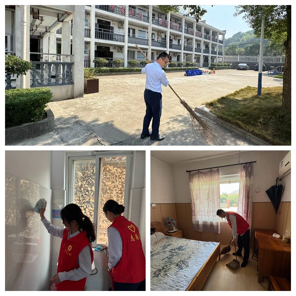 除了陪伴与交流,志愿者们还主动承担起清洁工作。他们拿起扫帚、抹布等工具,认真细致地打扫房间、整理床铺、擦拭家具。经过大家的共同努力,养老服务中心的环境变得更加整洁、舒适。老人们看着焕然一新的房间和干净整洁的环境,脸上露出了满意的笑容。