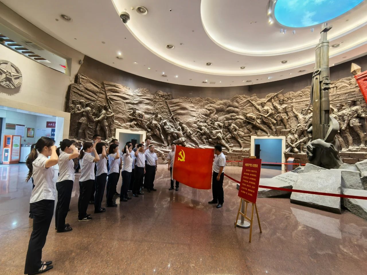 活动中,全体党员走进南昌八一起义纪念馆新馆大厅,在“第一枪”雕塑前重温入党誓词。面对鲜红的党旗,领誓人带领全体党员一起高举右手,再次庄严宣誓。“我志愿加入中国共产党……随时准备为党和人民牺牲一切,永不叛党。”铮铮誓言回荡在展厅里,一字一句,体现了党员对中国共产党的无限忠诚。