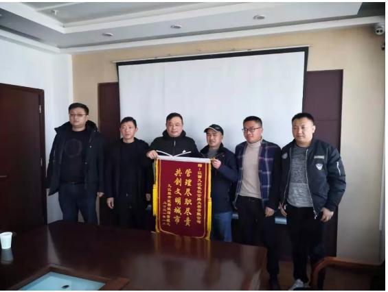 2021年1月29日上午,九江经开区赛城湖管理处将一面印有“管理尽职尽责、共创文明城市”的锦旗送到公司,以表达公司在九江市创建文明城市期间尽职尽责,为积极营造更加干净、整洁、漂亮、有序的城市环境做出巨大贡献的高度赞扬和诚挚感谢。