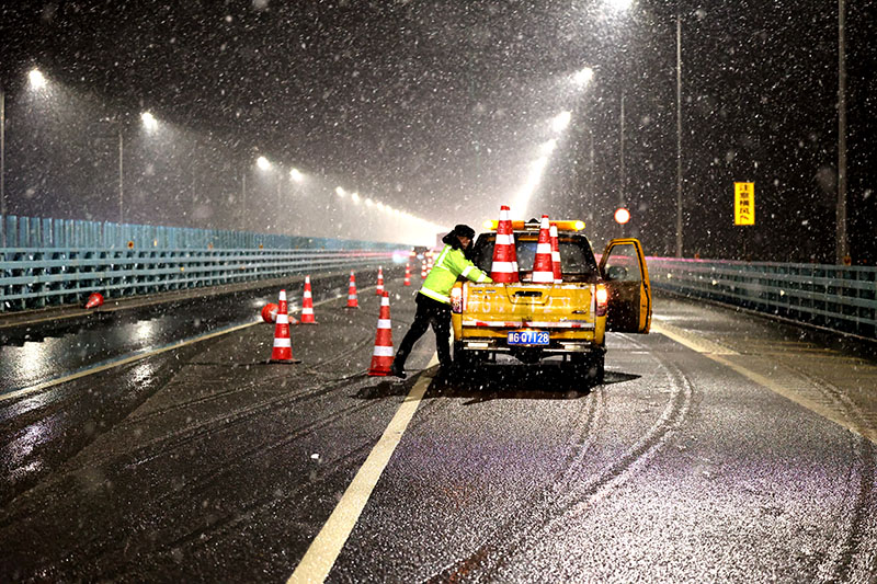 九江二桥坚持深化改革,在自动化、信息化上不断自我革新。气象监测系统、桥梁结构健康监测系统的投入使用,融雪撒布、除冰扫雪等机械化操作,大大节省了人力,提高了工作效率,有效降低了作业人员的安全风险,强化了冰雪恶劣天气的保畅力度。同时,积极总结历年抗冰雪经验,提前制定有针对性的防范措施,做好物资储备以及人员、机械设备的准备工作,严格执行24小时值班值守,加强与高速交警、路政、清障部门的沟通协调,以强有力的举措、充分的准备,确保圆满完成抗冰保畅任务。