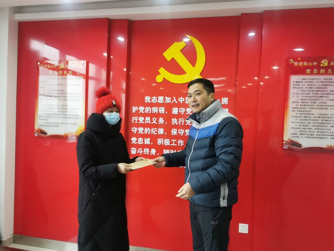 最后,公司领导班子走访慰问了困难党员,为她送去了组织的亲切关怀和新春祝福,并送上慰问金。在交谈中,公司领导班子详细询问了困难党员的工作和家庭生活情况,鼓励她要坚定信心、勇敢面对、克服困难,继续保持积极向上的心态,并祝愿她过一个欢乐、祥和的新春佳节。