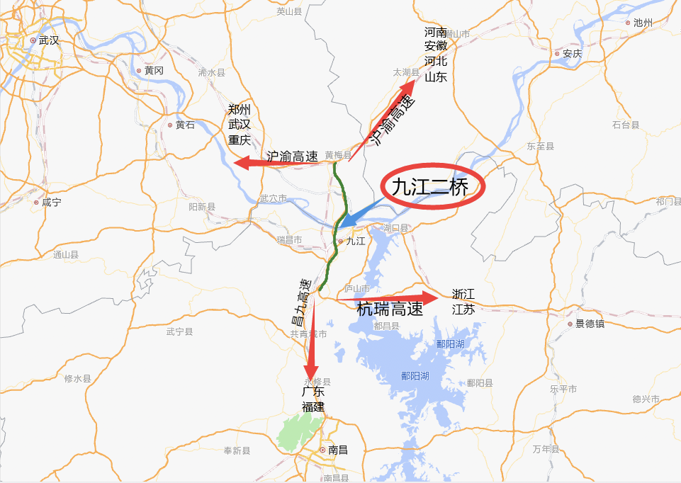 2.黄黄高速黄梅互通连接G50沪渝高速,向西与G45大广高速,S29麻阳高速互通,可达湖北武穴、蕲春、武汉、陕西、重庆、河南、河北方向等。向东接G35济广高速、G4212合安高速,可达安徽合肥、河南商丘、山东济南,江苏南京方向等;