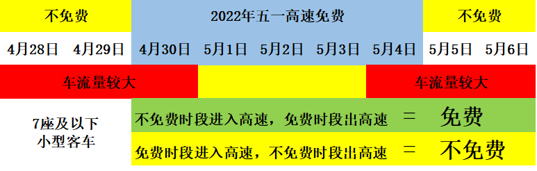 根据《国务院关于批转交通运输部等部门重大节假日免收小型客车通行费实施方案的通知》,五一期间全国收费公路将继续免收小型客车通行费,免费对象为7座以下(含7座)小型客车。具体免费时段从4月30日00:00开始,5月4日24:00结束,高速公路以车辆驶离出口收费车道的时间为准。
