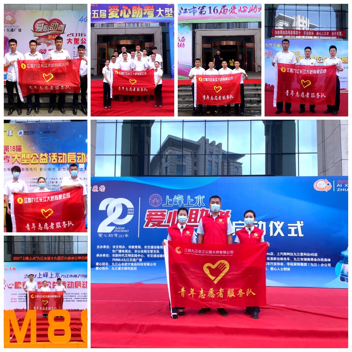 截至今年,九江二桥已连续7年参与爱心助考活动,累计安全送达考生近50人,受到广大考生和家长一致好评。长期以来,九江二桥积极组织参与义务献血、敬老爱老、学雷锋等各类志愿者服务活动,投身社会公益,传递国企温暖,将国企的爱心公益力量覆盖到更多群体,展现了九江二桥良好的社会形象。
