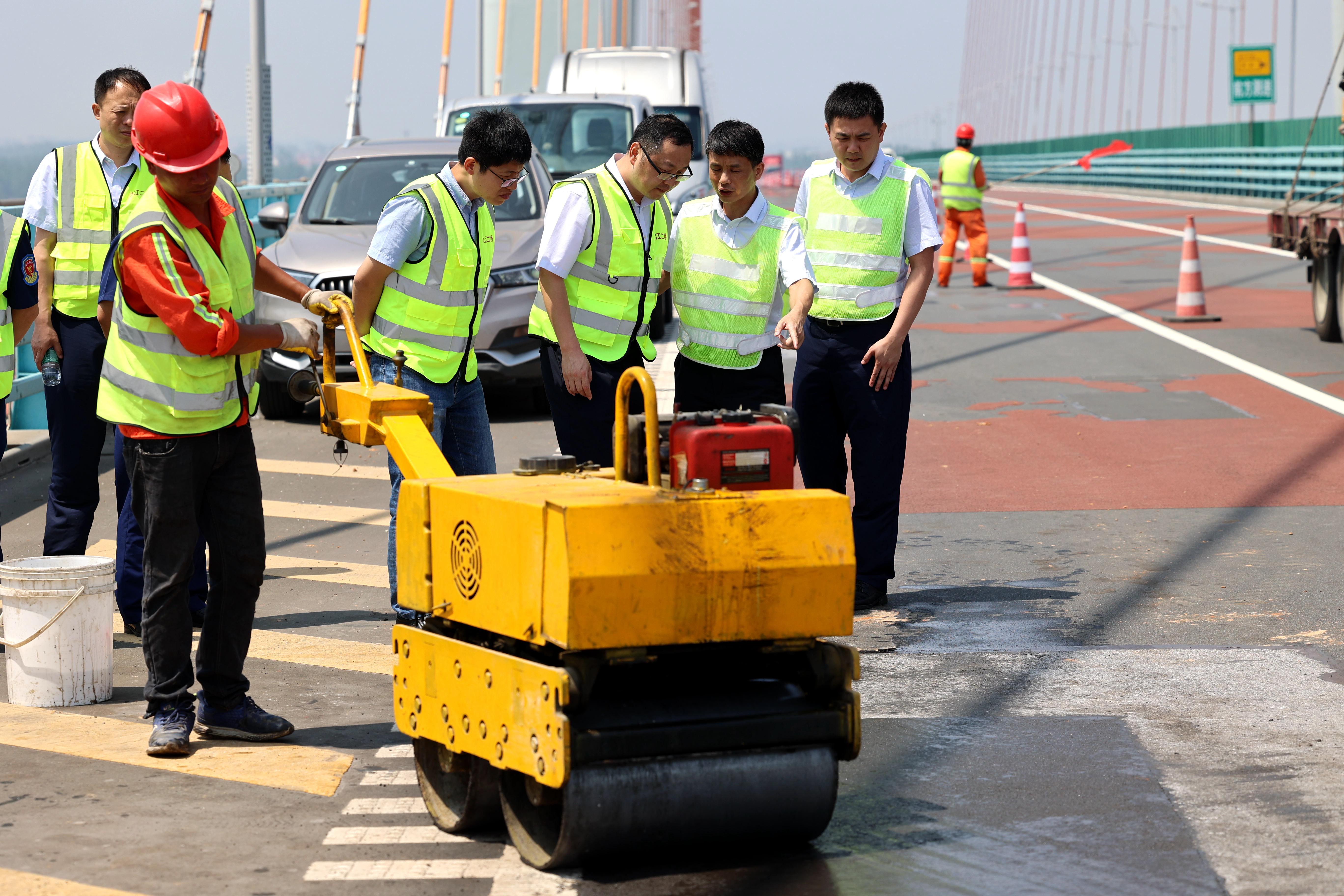 在九江二桥监控中心,张保泉听取了监控中心基本情况介绍,了解管辖路段监控视频等各类设施运行及相关岗位工作运转情况,强调要扎实做好疫情防控工作,保障防疫物资储备。在主桥施工现场,一行人查看了现场施工和安全作业情况,详细了解了环氧沥青路面坑槽维修等相关施工工艺,调研了九江二桥主桥排水相关问题,以及危化品泄漏等应急处理和应对措施,他指出,九江二桥在长江水面之上,要充分掌握和严格落实长江生态环境保护相关政策要求,防止造成污染。