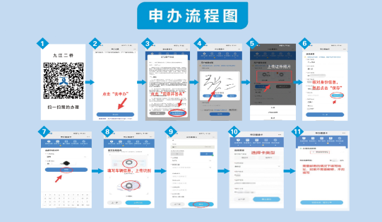 1、不能到现场办理ETC的车主,可使用微信扫描申办二维码进行线上办理,按提示填写申办信息完成预约,待发行审核通过后,九江市内可预约上门安装,九江市外其他地区可包邮到家自行安装激活。