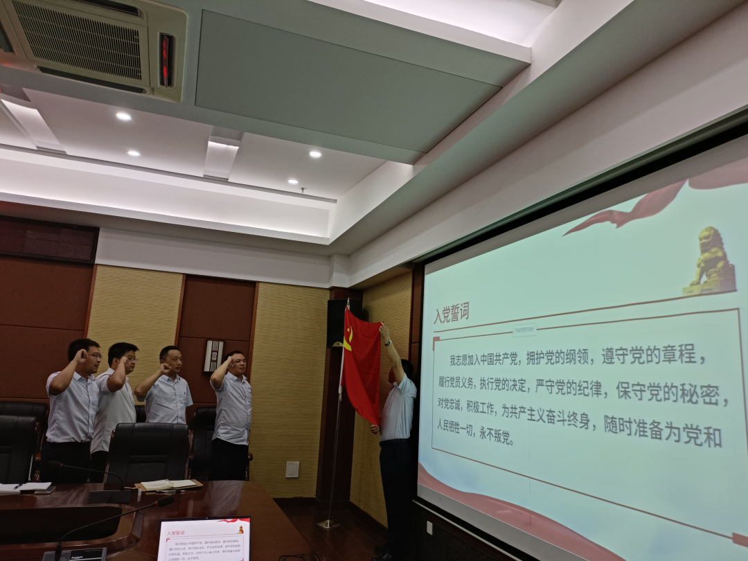 随后,3名预备党员在本月过政治生日的党员同志带领下,开展了集体入党宣誓仪式。支部书记为预备党员发放了党徽,鼓励他们要进一步提升自己思想政治素养,在实践中锻炼提高,在本职岗位上勤奋工作、积极作为,充分发挥先锋模范作用,在保障九江二桥安全健康发展中勇担使命、不负韶华,以优异成绩迎接党的二十大胜利召开。