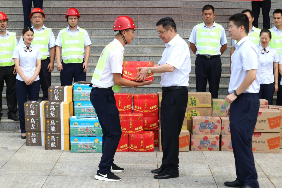 8月3日,集团公司党委副书记、副董事长、总经理曾昭和来到公司开展“情系一线送清凉”活动,代表集团公司向高温酷暑下坚守在一线和户外作业的各层级员工致以慰问致敬,并将集团关怀送到职工手中。路桥公司党委副书记、总经理樊卫凤,党委委员、副总经理梁军参加慰问。