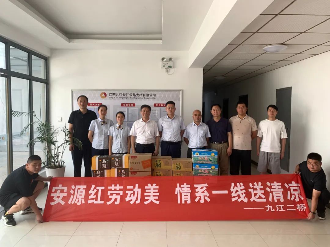 近期,天气持续高温,在炙热如烤、居高不下的气温里,九江二桥收费一线、工程养护、安全管理等各层级员工,头顶烈日,坚守岗位,用实际行动“汗”卫畅安舒美的行车环境,全力确保道路畅通。值此骄阳似火,集团公司曾昭和等一行亲临现场,与职工们一一握手致敬,感谢他们付出的辛勤劳动,并为其送上西瓜、凉茶、菊花茶、龟苓膏等清凉解暑用品,充分展现集团公司对基层职工的关心和爱护。