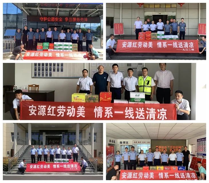 在各收费现场。公司领导对不畏炎热酷暑、坚守在工作一线的员工表示亲切慰问,感谢他们坚守岗位的辛勤付出,同时叮嘱大家在高温作业时要注重劳逸结合,做好防暑降温,确保自身安全。并要求相关部门要做好后勤保障工作,及时供应绿豆汤、西瓜、凉粉等消暑食物,切实把防暑降温工作落实到每一个岗位。